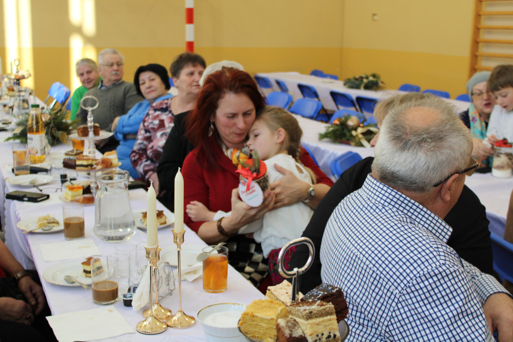 W tym roku, uroczystość była podzielona na dwie części: o 9:00 gościliśmy Babcie i Dziadziów naszych najmłodszych, czyli dzieci z oddziału przedszkolnego. Na czele z Panią Eweliną, przedszkolaki przygotowały wspaniały występ pełen wspomnień, śmiechów i radości, a ich taniec na zakończenie, był jak wisienka na torcie. Babcie i Dziadziowie mogli wyprzytulać swoje wnuczęta, o czym świadczą zrobione im zdjęcia. Druga część uroczystości rozpoczęła się o 11:30 pantomimą pt. „Dziewczynka z zapałkami”, przygotowaną przez klasy 3 i 4. Były również wierszyki, życzenia dla Babć i Dziadziów, a całość uroczystości zwieńczyło wspólne kolędowanie i występ mini piratek. Nasi drodzy goście, Babcie, Dziadziowie, a także zaproszeni goście, zostali ugoszczeni po królewsku przez wspaniałe mamy, które czuwały, aby nikomu nie brakło kawy, herbaty, ciasta czy obiadu. Nie udałoby się zorganizować tak wspaniałej uroczystości bez wsparcia finansowego Rady Rodziców, Rady Sołeckiej, a także Pana Wójta, Leszka Ząbkowskiego.