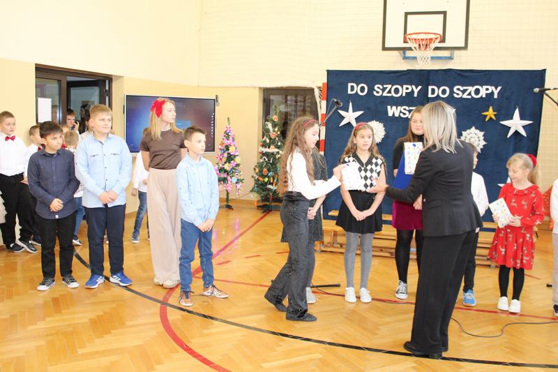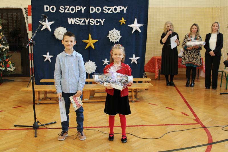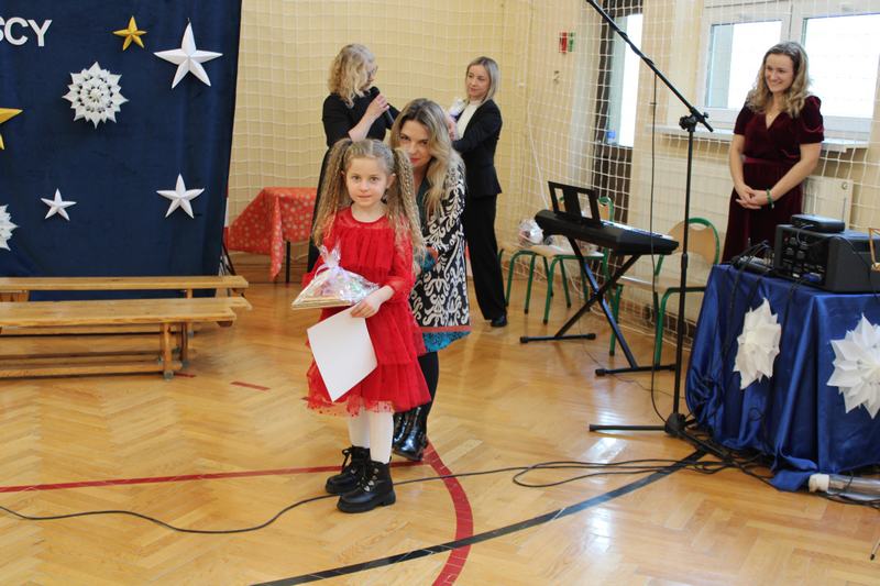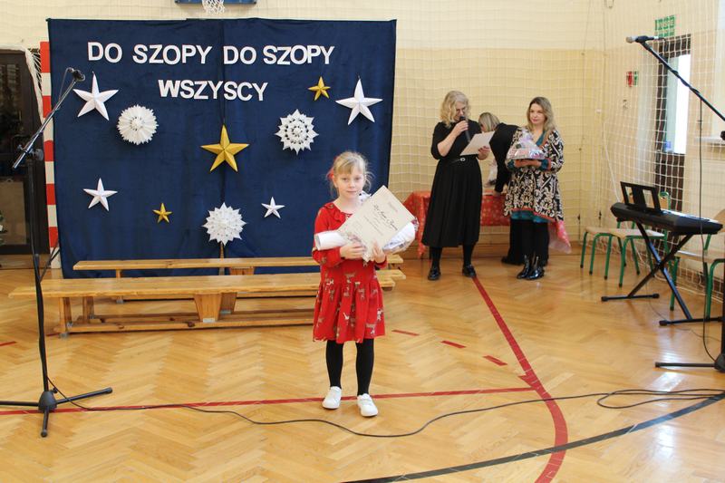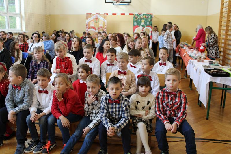 18 grudnia, w naszej szkole, odbył się kiermasz świąteczny, który wieńczył działania przygotowujące uczniów do świąt Bożego Narodzenia. Wcześniej, w ciągu tygodnia, klasy uczestniczyły w pieczeniu i ozdabianiu pierniczków, świątecznej sesji zdjęciowej, a także w warsztatach robienia kartek świątecznych. Nasze wyroby, pierniczki i kartki można było kupić właśnie podczas kiermaszu. Oprócz nich Pani Agnieszka, wychowawczyni klasy 1, przygotowała piękne, papierowe ozdoby choinkowe, Panie z przedszkola, cudnie pachnące stroiki, a Pani Klaudia wspaniałe, szyszkowe laleczki. Dodatkowo można było spróbować i kupić paczki z ciastem, a także wziąć udział w akcji „zrób sobie prezent” i wylosować różne gadżety. Wszystko co przygotowaliśmy, rozeszło się w 10 minut, a nie było tego mało. Na szczęście byliśmy przygotowani także artystycznie. Grupa przedszkolna na czele z Panią Eweliną, wystąpiła z przedstawieniem świątecznym, a szkolny chór pozwolił cieszyć ucho kolędami i pastorałkami.