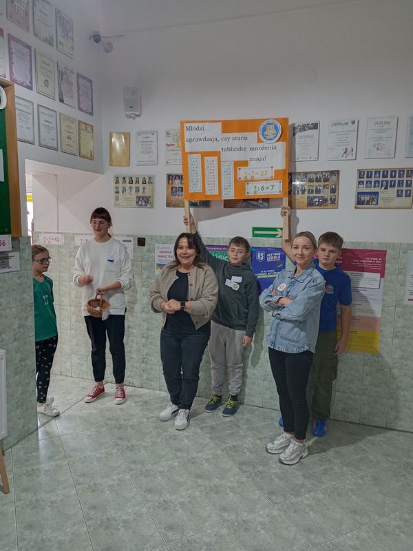 Patrole Egzaminacyjne z dużym zaangażowaniem przepytywały również pracowników szkoły, sprawdzając ich „tabliczkową” wiedzę w formie ustnych egzaminów. Dorośli, wykazując się znajomością mnożenia, pokazywali uczniom, że opanowanie tabliczki mnożenia jest umiejętnością niezwykle przydatną w codziennym życiu. To był dzień pełen uśmiechu, zdrowej rywalizacji i matematycznych sukcesów. Dziękujemy wszystkim, którzy wzięli udział w akcji!